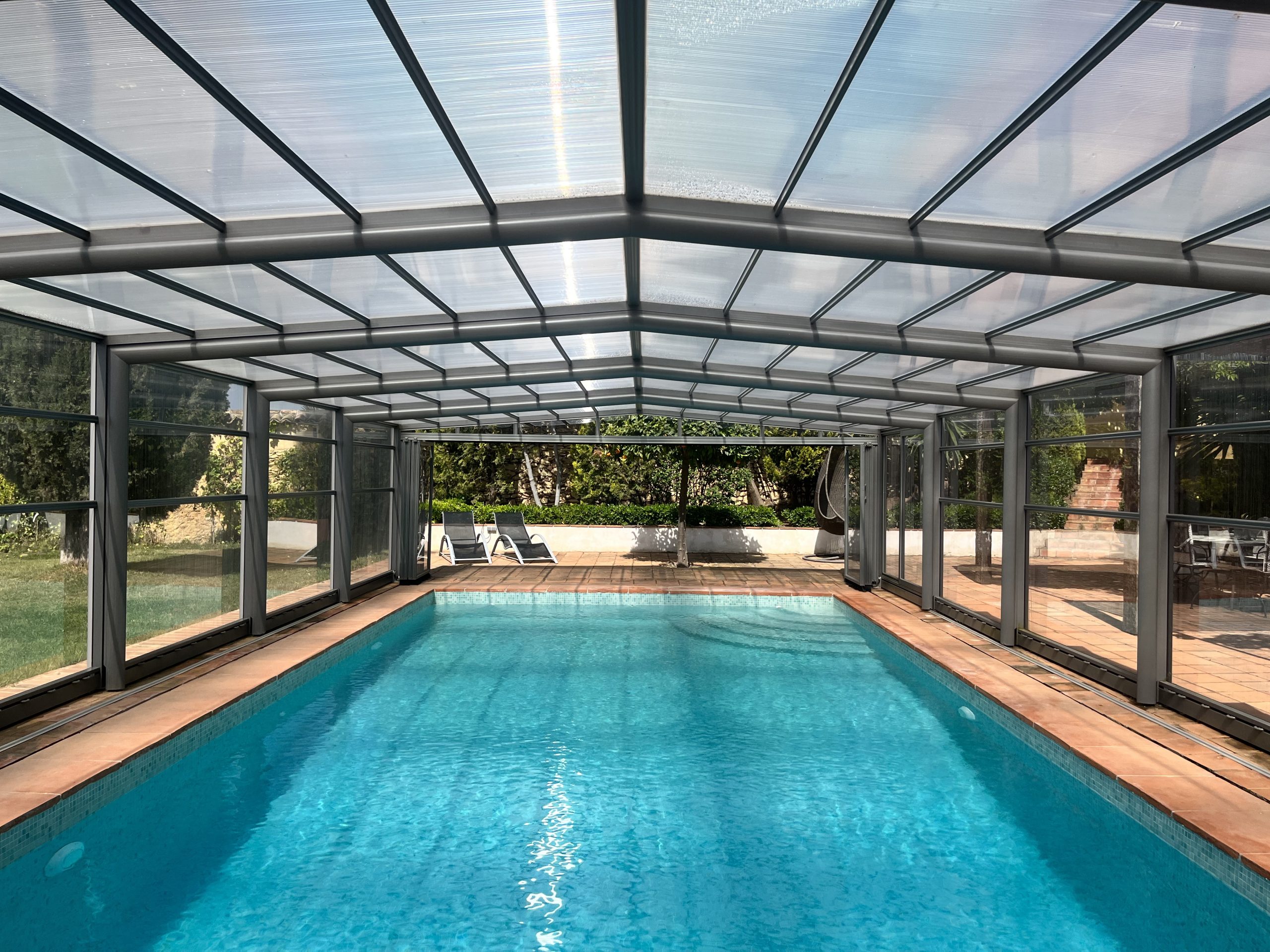 En invierno la piscina está cubierta y climatizada (temperatura del agua entre 25ºC a 28ºC) para poder seguir disfrutando de ella.